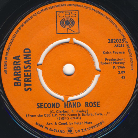 Barbra Streisand – Second Hand Rose 7″